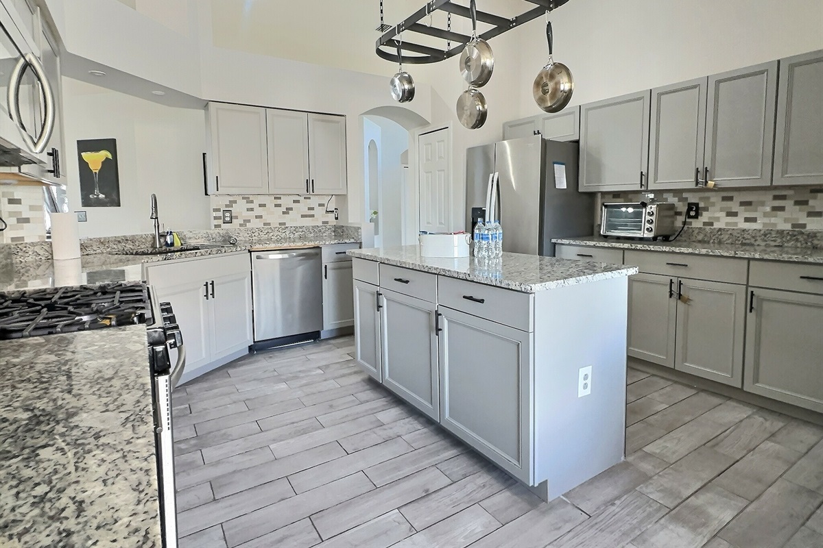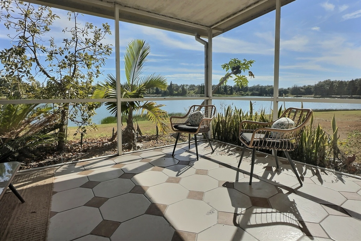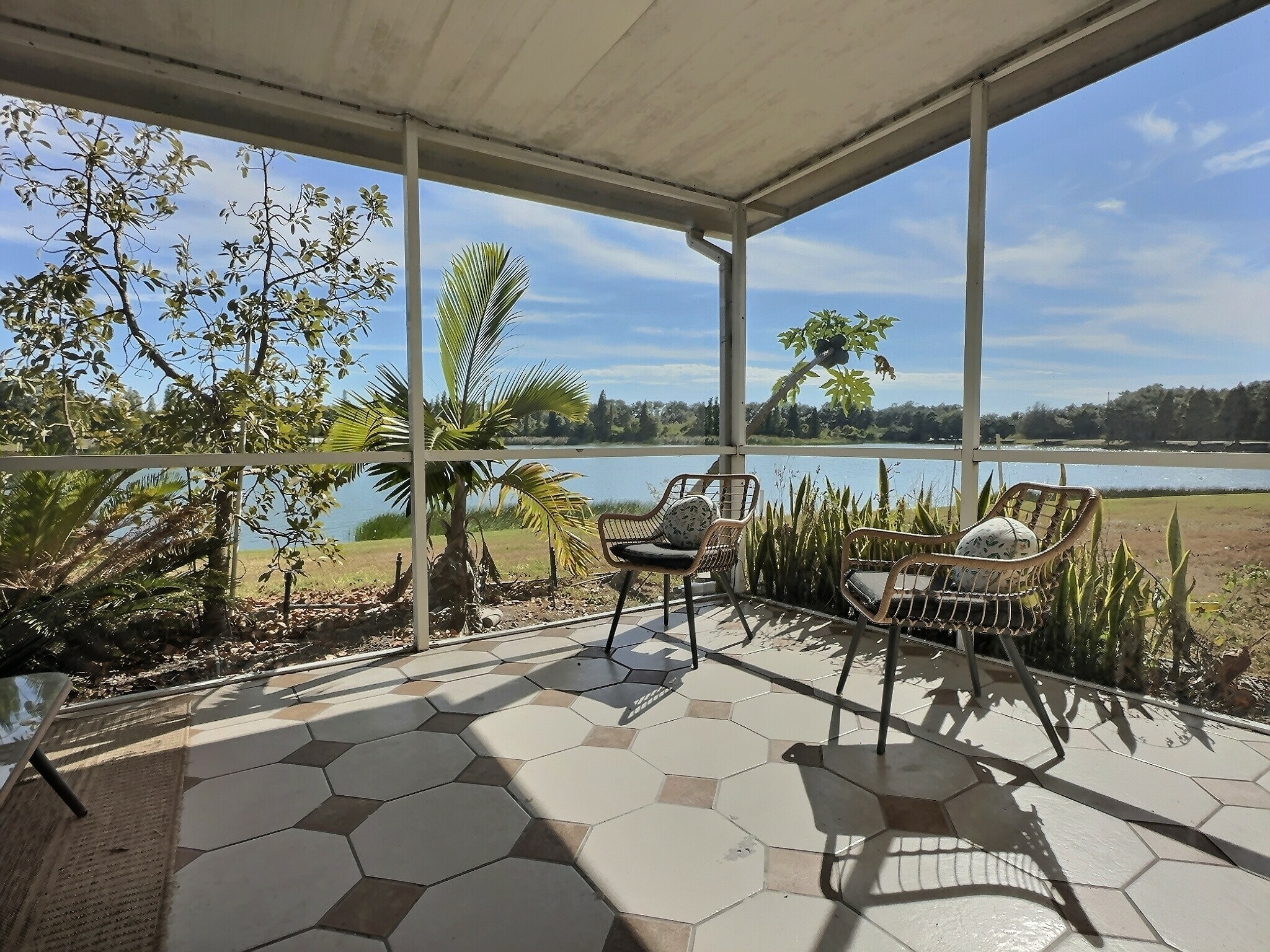 Nestled at the edge of a serene lake, this property features a spacious covered lanai where you can unwind and enjoy the view, whether you're sipping your morning coffee or watching the sunset. The three cozy bedrooms each feature a queen-sized bed, perfect for a restful night’s sleep after a day of exploring. The master bedroom includes a dedicated workspace, making it ideal for those who need to mix business with pleasure.