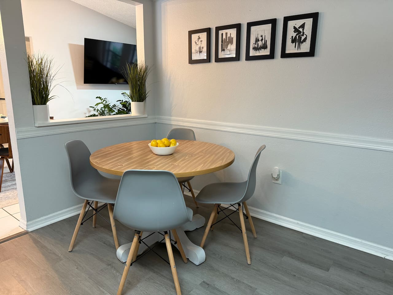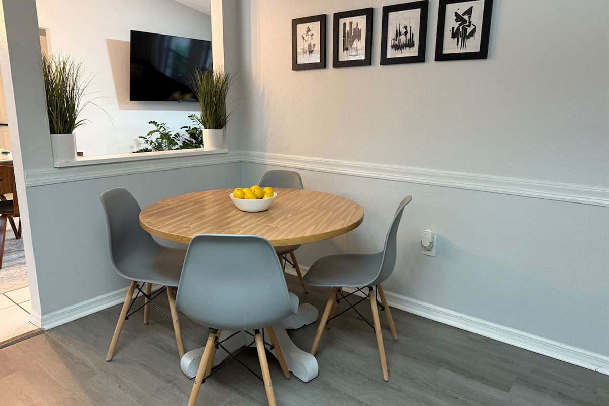 Step into the living room designed for both relaxation and style. Perfect spot to unwind after a day at the beach or gather with family and friends. Enjoy your favorite shows or stream movies on the 70" ROKU smart TV equipped with access to all your favorite apps.