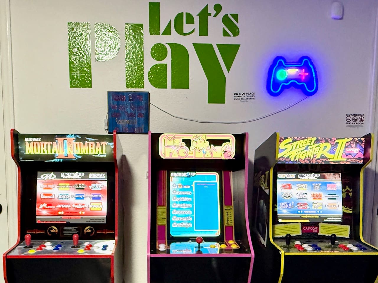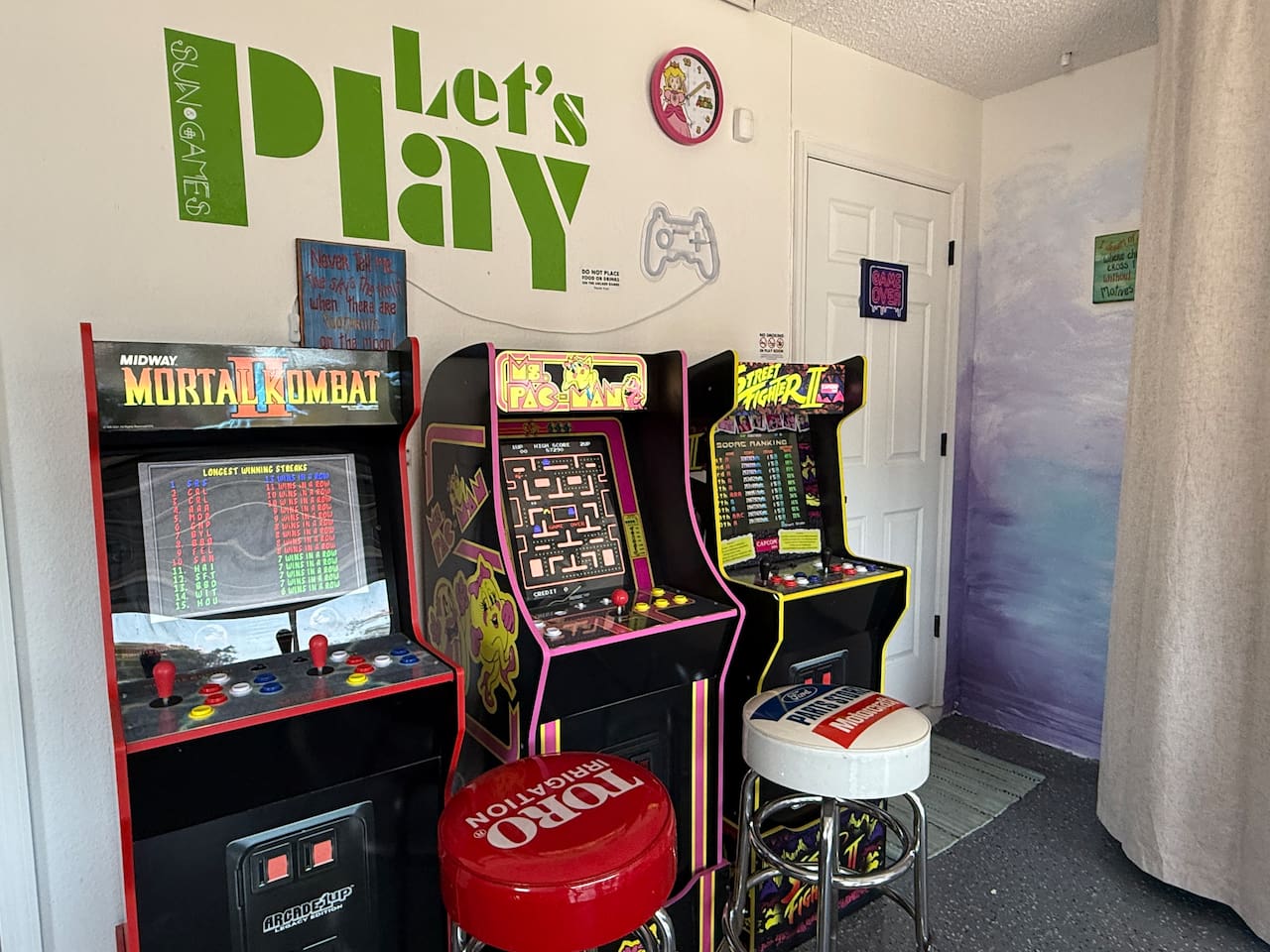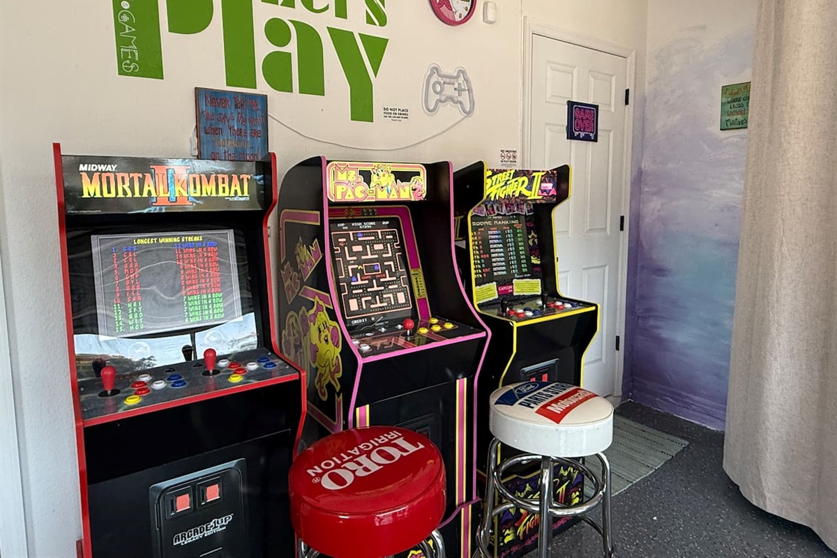 • THREE Retro-Style Arcade Games: Relieve your childhood with classic games like Pac-Man and Galaga.