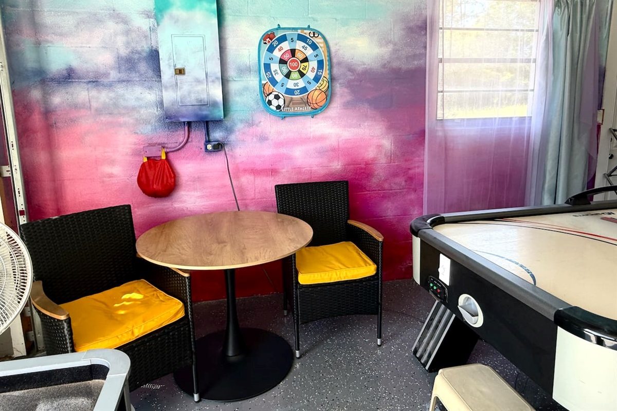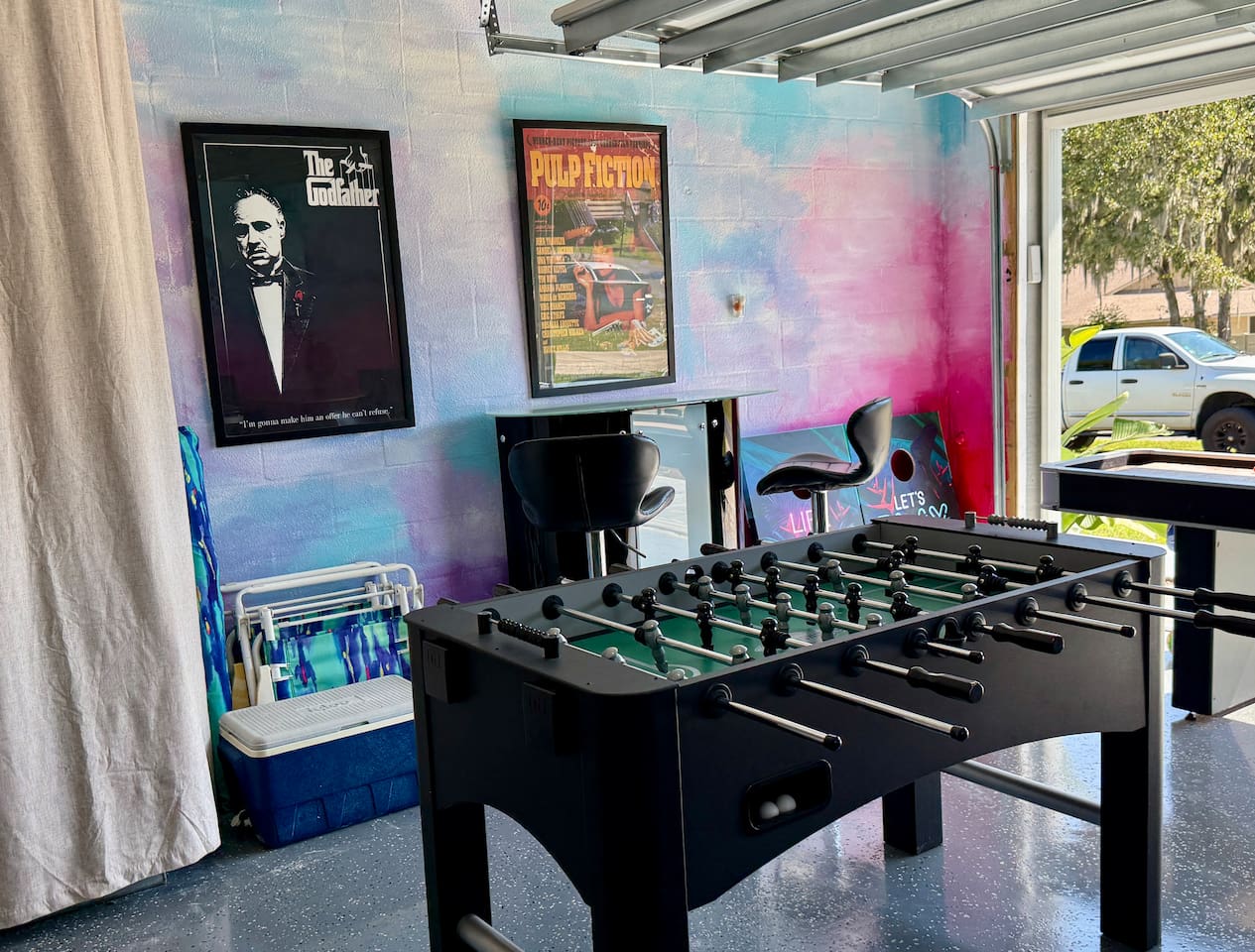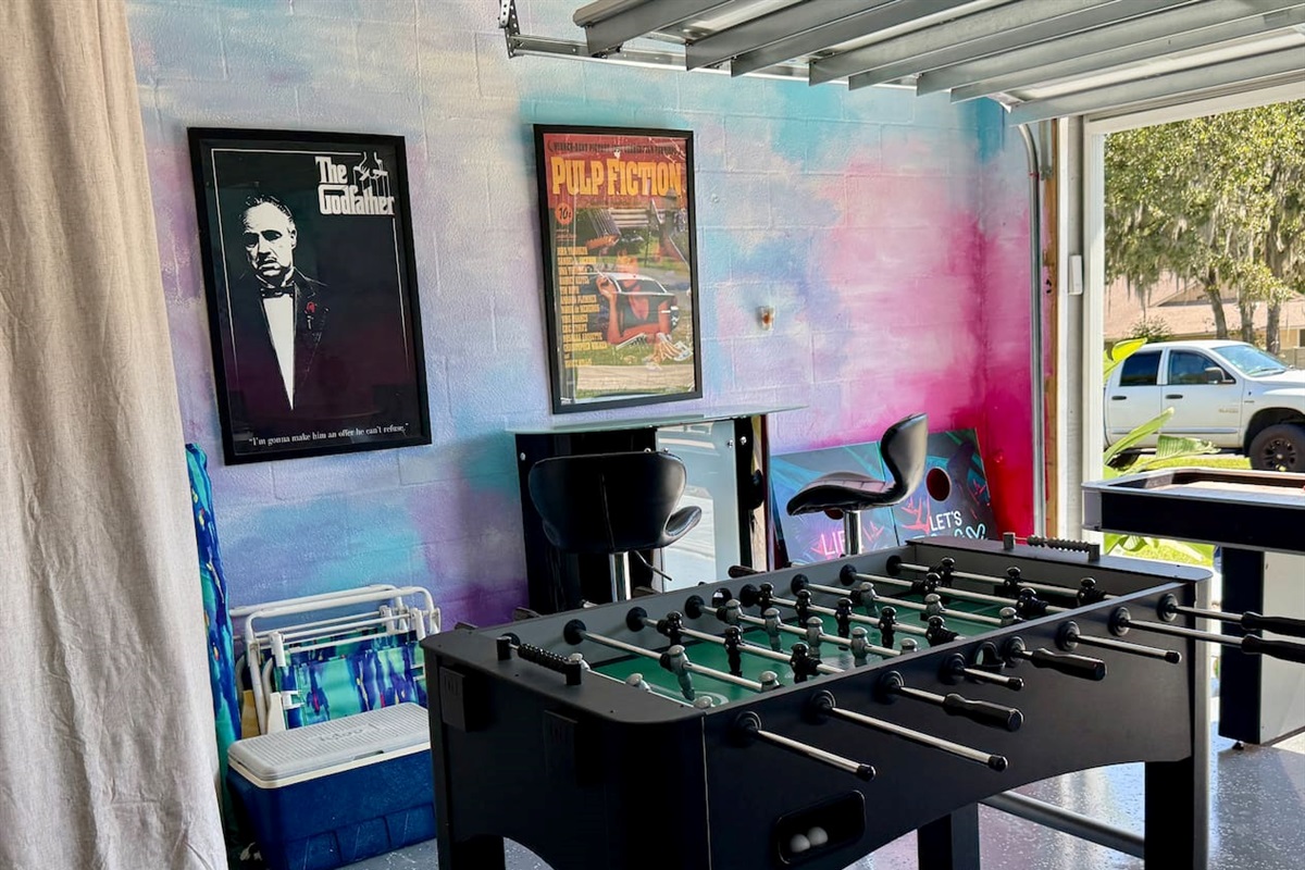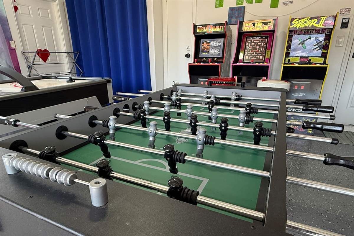 This home is packed with fun for all ages! The whole garage has been turned into a game room for your enjoyment: