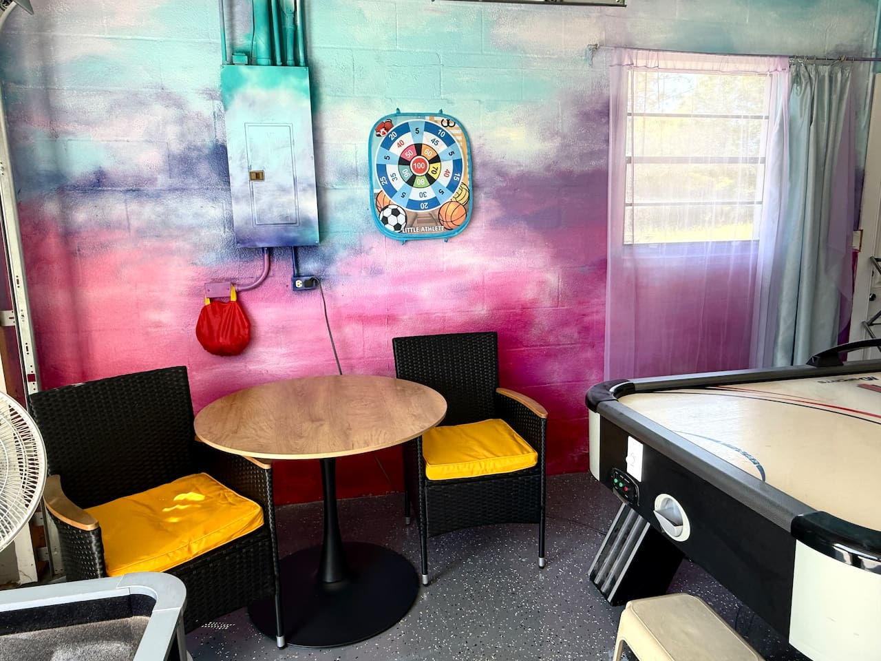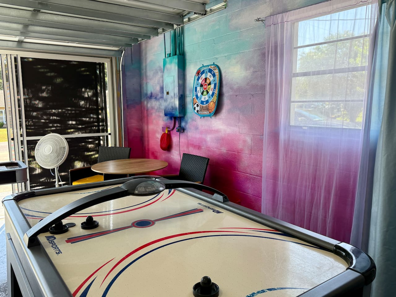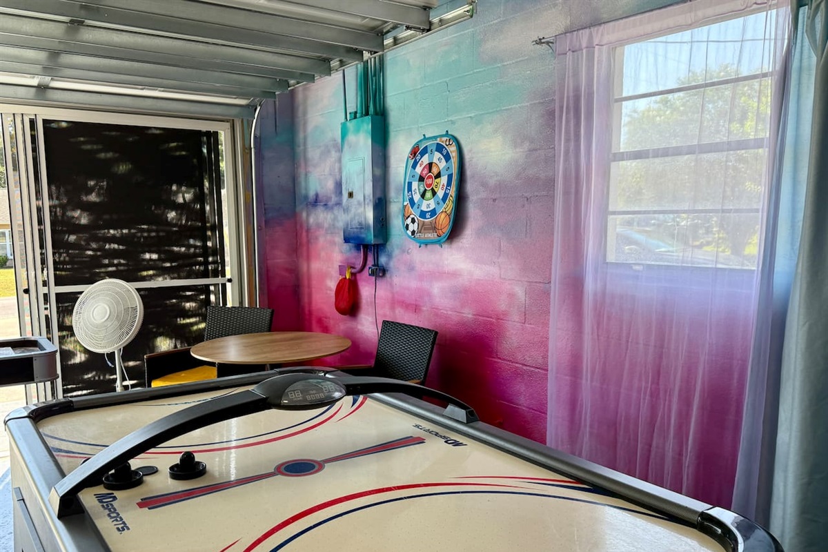 This home is packed with fun for all ages! The whole garage has been turned into a game room for your enjoyment: