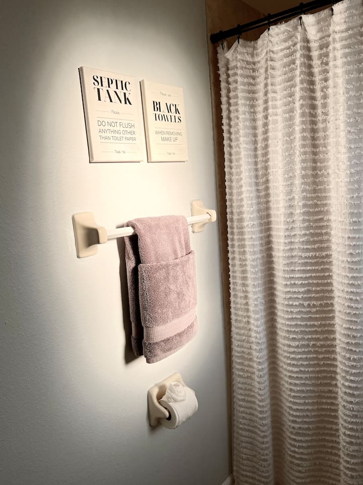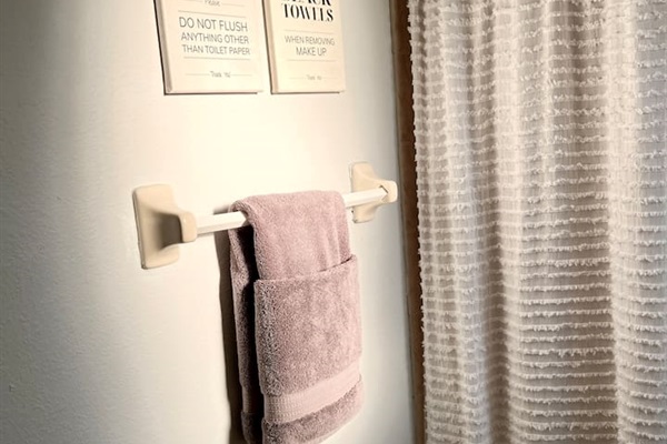 Clean, modern bathrooms with all the essentials including fluffy towels as well as shampoo, conditioner and body soap. Both bathrooms have hair dryers.
